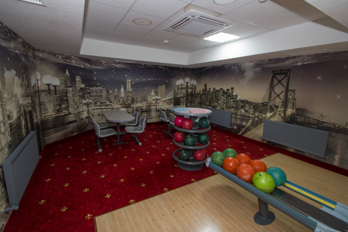 В санатории «Славяновский исток» в Железноводске, посетители, свое свободное время, с большим удовольствием проводят в боулинге. Боулинг представляет собой достаточно просторное помещение с двумя игровыми дорожками, над которым висит большой экран, на котором производится подсчет очков после каждого броска шара. Посередине размещена стойка с шарами. Кегли в конце дорожки устанавливаются автоматически. Также в боулинге есть зона для отдыха со столами и мягкими креслами. Здесь можно отдохнуть в перерывах между бросками. Для тех, кто только осваивает данную увлекательную игру, опытные инструкторы всегда помогут и обучат всем правилам и технике броска шара.